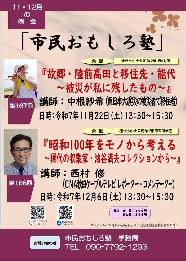 2025年11月22日(土)13:30~15:30 第167回市民おもしろ塾