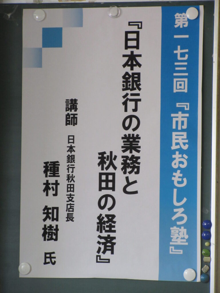 第173回『日本銀行の業務と秋田の経済』